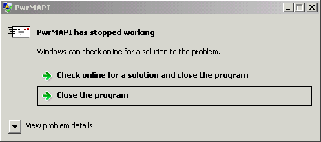 Faulting application name: pwrmapi.exe, version: 2008.0.0.3, time stamp: 0x4bb1b469