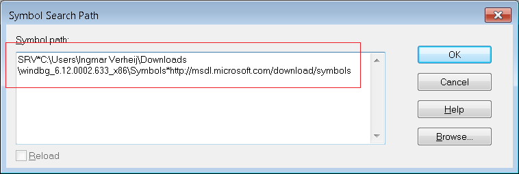 - Configure the Symbol Search Path (CTRL+S, see KB311503). Make sure you specify both a local and a remote path