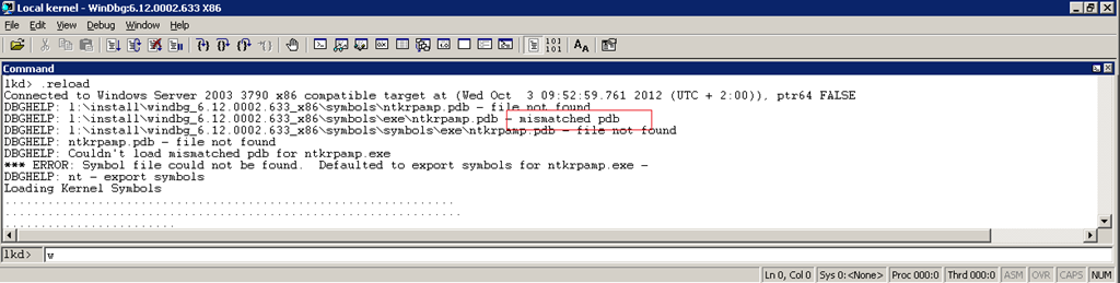 WinDbg: Couldn’t load mismatched pdb for ntkrpamp.exe