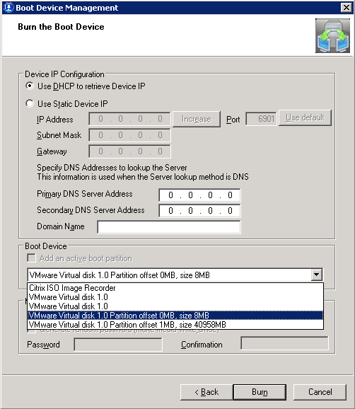 It is possible to store the PVS bootstrap on a disk instead of a partition but that comes with a challenge, it is unclear which ‘VMware Virtual disk 1.0’ is the PVS system disk or the 10MB disk for the bootstrap. If you choose the wrong disk (like I did) you’ll ruin your PVS server (Error loading operating system).