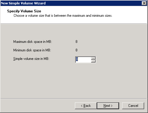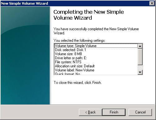 Disk Management will detect a new disk and will ask to initialize the disk. Select MBR (Master Boot Record) and click OK. The disk is now visible but has no partitions, it is marked as ‘Unallocated’.