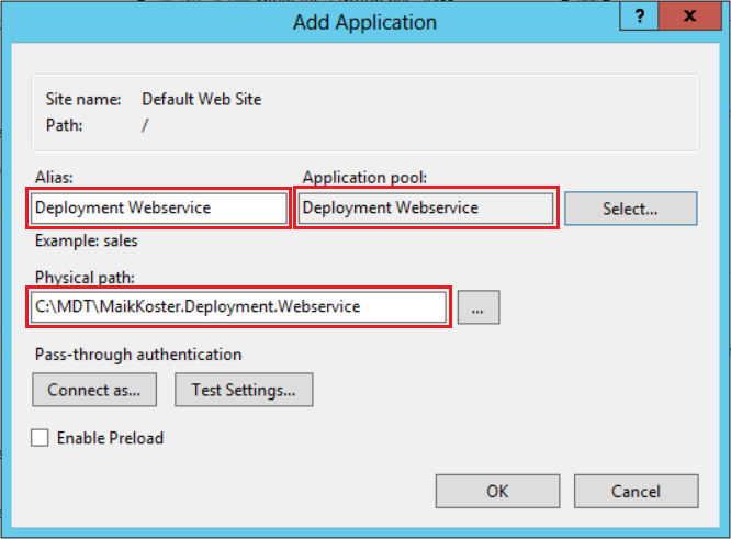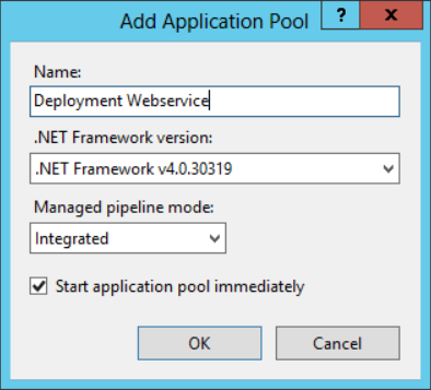 - Create an application pool with the name Deployment Webservice