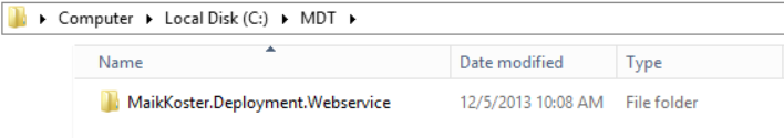 - Download and extract the content of the web service on a local folder of the web server (for instance C:\MDT)