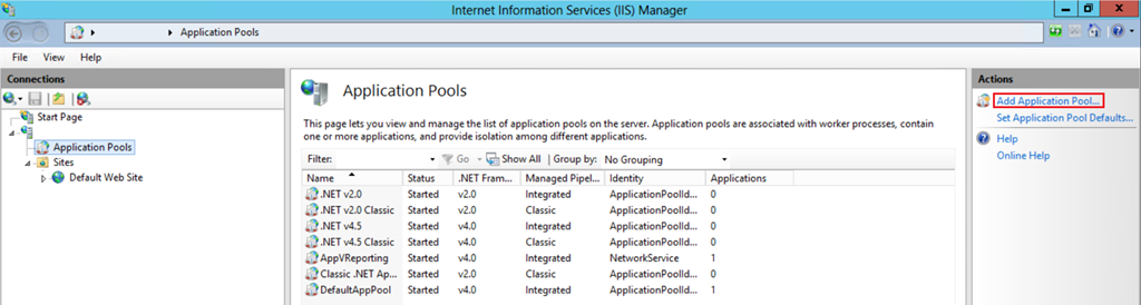 - In the Application Pools section click on Add Application Pool