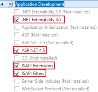 - Install the Web Server (IIS) – Web Server role with (at least) the following features