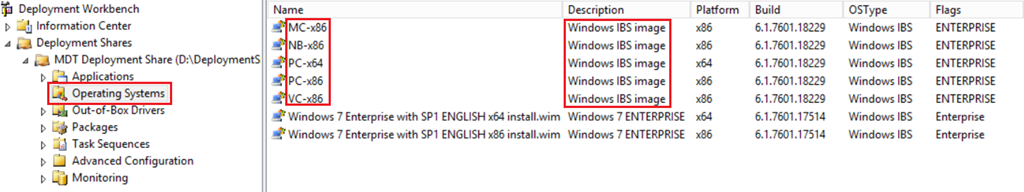 Besides unattended installations MDT can deploy images (injecting model specific drivers) captured from a reference machine. These images are stored as Windows Imaging Format files (the same format that’s used to boot and install Windows operating systems) and a referred to as Operating System.