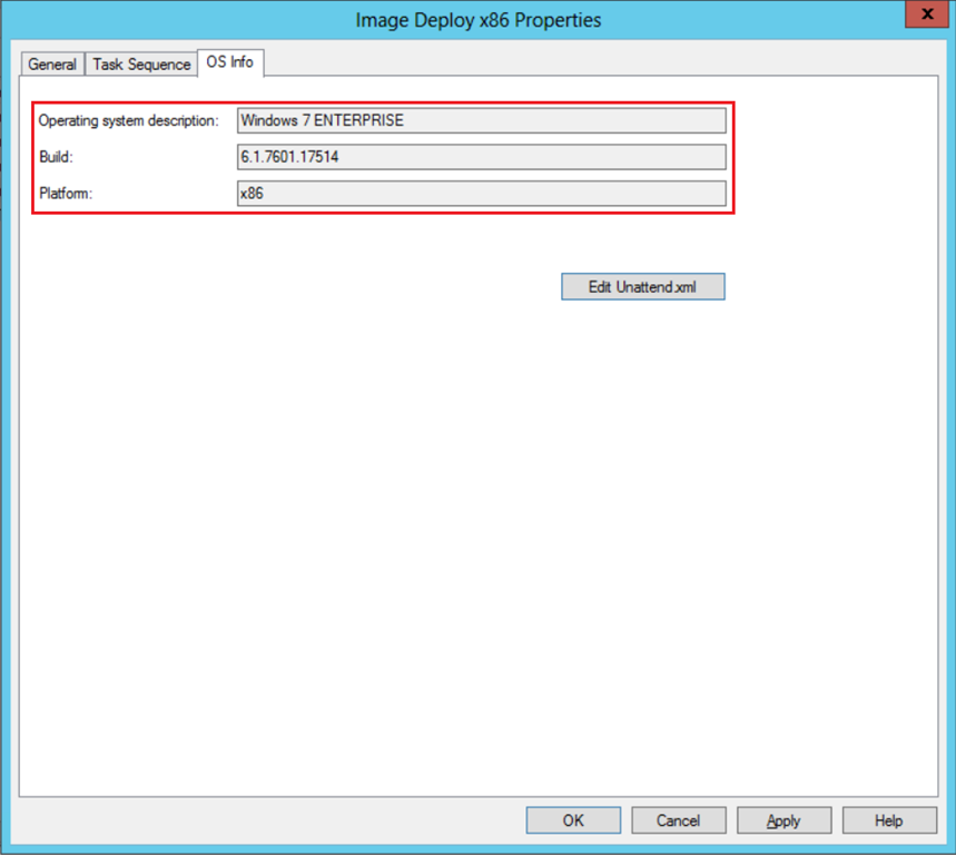 - The platform of the operating system (x86 / x64) must match the platform of the task sequence