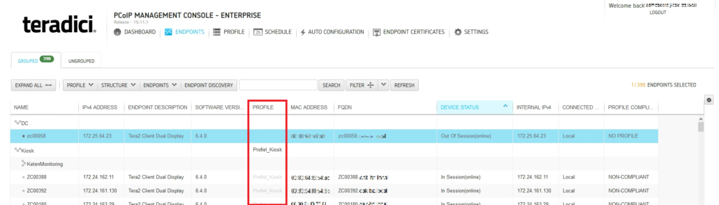 Unfortunately after updating our management console, I came across a problem where the details of the Zero Clients were no longer visible in the management console.