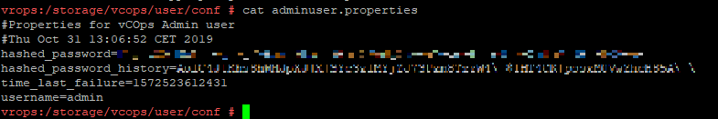 The solution to this kind of lock costs a little more effort than the other problems. To get rid of the lock, you’ll have to edit the file /storage/vcops/user/conf/adminuser.properties on all nodes of the vROPS cluster.