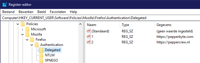 So I’ve made a command which runs each time a user starts Mozilla Firefox. This then grabs the SSO_LINKS variable and for each URL inside the variable, it creates a registry value in the corresponding location to the policy.