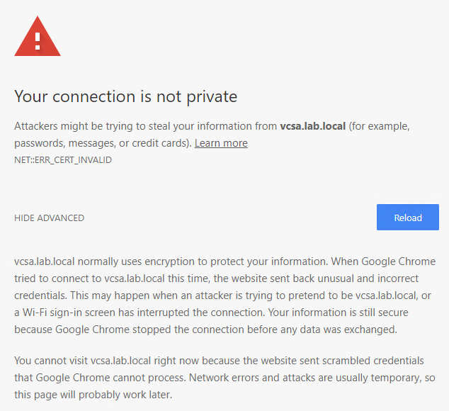 So you just installed a new vCenter Server Appliance (VCSA) and when you want to go to the web-interface to configure the server, you get the nasty HSTS message saying it is not safe to continue. Where in older browser versions you were able to click “accept and proceed”, in todays browsers this option is no longer available.