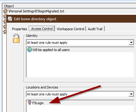 - Create a second (child)zone called FSLogix migrated. In the rules tab create a File or folder rule for the folder <Homedrive>\Personal Settings\FSLogixMigrated.txt. We’ll create that file later on. In the example below the Homedrive is O.